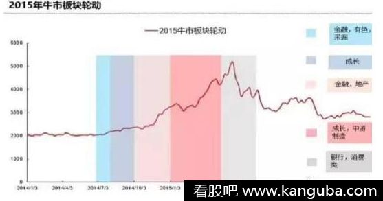 而再来看看2015年的杠杆牛的板块轮动顺序: