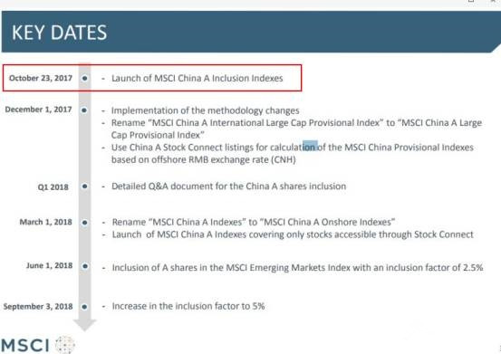 2018年3月1日,将“MSCI中国A股指数”更名为“MSCI中国A股在岸指数”;发布新的“MSCI中国A股指数”,追踪的个股将限定在“沪股通”和“深股通”范围之内。