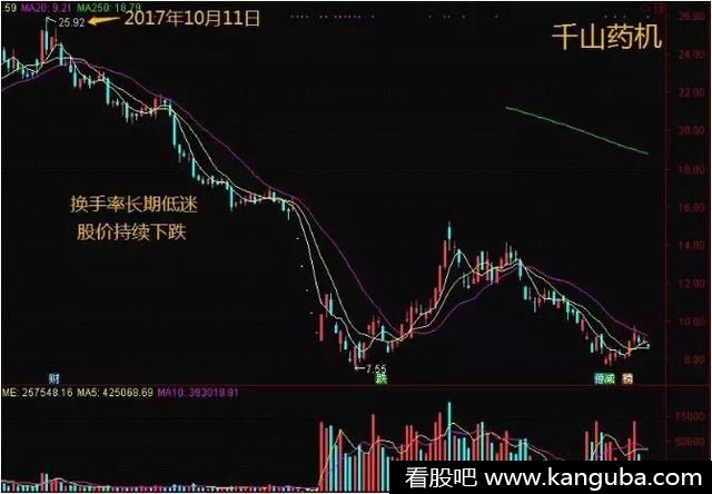 2、低位换手率非常的高,这并不意味着主力在吸货,特别是股价还在下跌趋势时,通常是继续派发的表现。