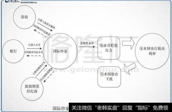与此同时,在股票市场上,国际炒家卖空股票、积累大量股指期货的空头头寸。国际炒家在外汇市场上大手卖空本币,由于联系汇率自动调节机制,且为了限制炒家获取本币,一般当局会采取提高短期利率的方式来抬升炒家的资金成本。利率上升会对股市形成打压,股市下跌后,炒家就可以通过低价购回股票和交割股指期货来获利。