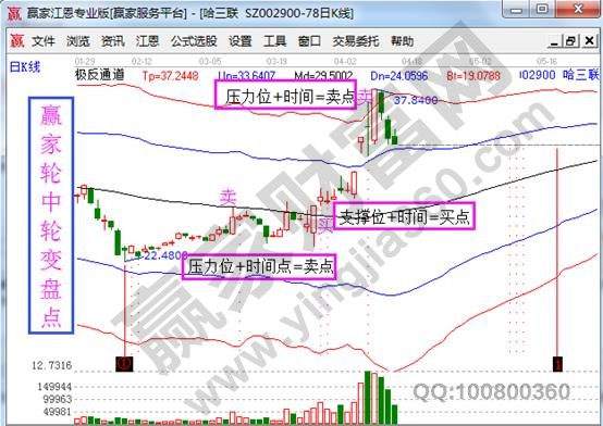 接着,什么时间买卖。答:当股价跌落到支撑位,且时间窗口临近的时候买;当股价上涨到压力位,且时间窗口临近的时候卖。江恩认为,时间是决定市场走势最重要的因素。通过对个股时间周期的研究,可以提前计算个股可能发生趋势转变的时间,在时间变盘点买卖股票能更有效的提升资金的使用效率。赢家时间点分析工具,推荐学习:等距时间周期线、黄金时间周期线、赢家轮中轮变盘点、自定义周天时间线等。(参考下图)