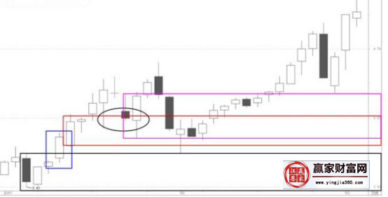 (5)蓄势擎天(紫):股价弱势回调后的二次上涨K线;